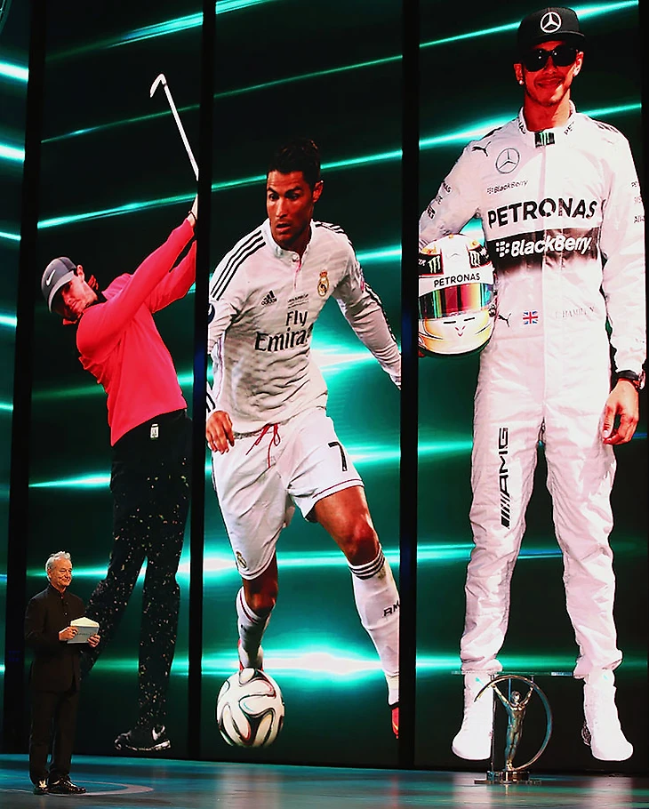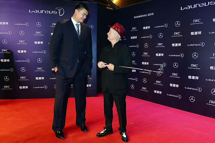 С Яо Минем перед вручением премии лучшим людям из мира спорта в Шанхае в 2015 году.