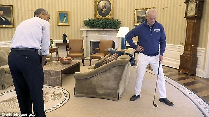 В 2016 году Билл Мюррей был в Белом доме, где не просто общался с 44-ым президентом США, кивая головой за столом, а учил Барака Обаму играть в гольф. Все СМИ писали про игру, но нигде не сказали, чем она закончилась. Но, думаю, нам и так понятно, за кем была победа в тот день.