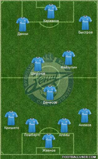 «Зенит» (версия ProZenit Open Blog): Жевнов – Анюков, Алвеш, Ломбертс, Кришито – Денисов, Широков, Файзулин – Быстров, Данни – Кержаков