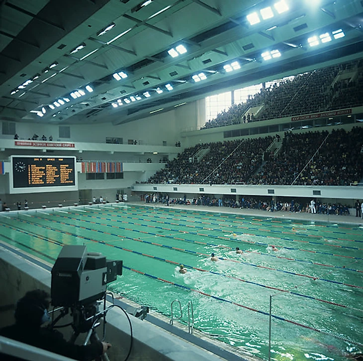 Одна из главных фишек «Олимпийского» – звуконепроницаемая перегородка высотой в восьмиэтажный дом, которая собирается за пару часов. С ее помощью можно проводить два крупных мероприятия одновременно. На Олимпиаде-80 в одной части стадиона рубились баскетболисты, в другой соревновались боксеры, а рядом в бассейне мировые рекорды бил Владимир Сальников.