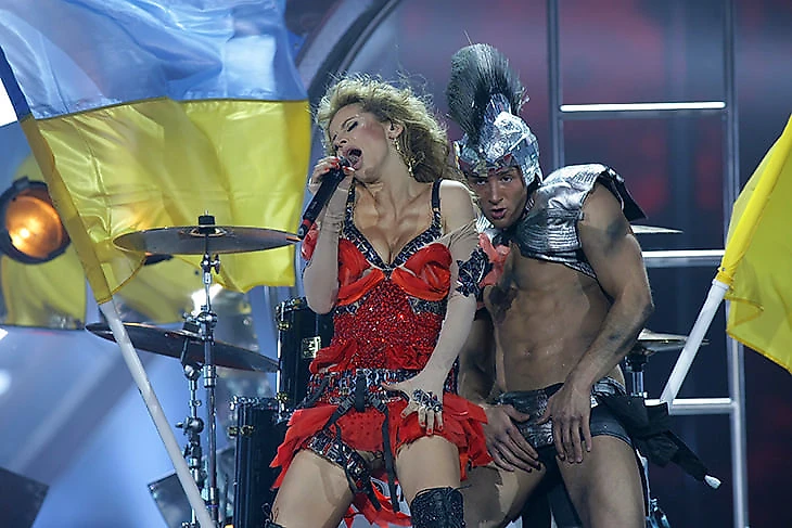 А от Украины жгла Светлана Лобода с танцами у шеста, полуголыми гладиаторами и национальными флагами.