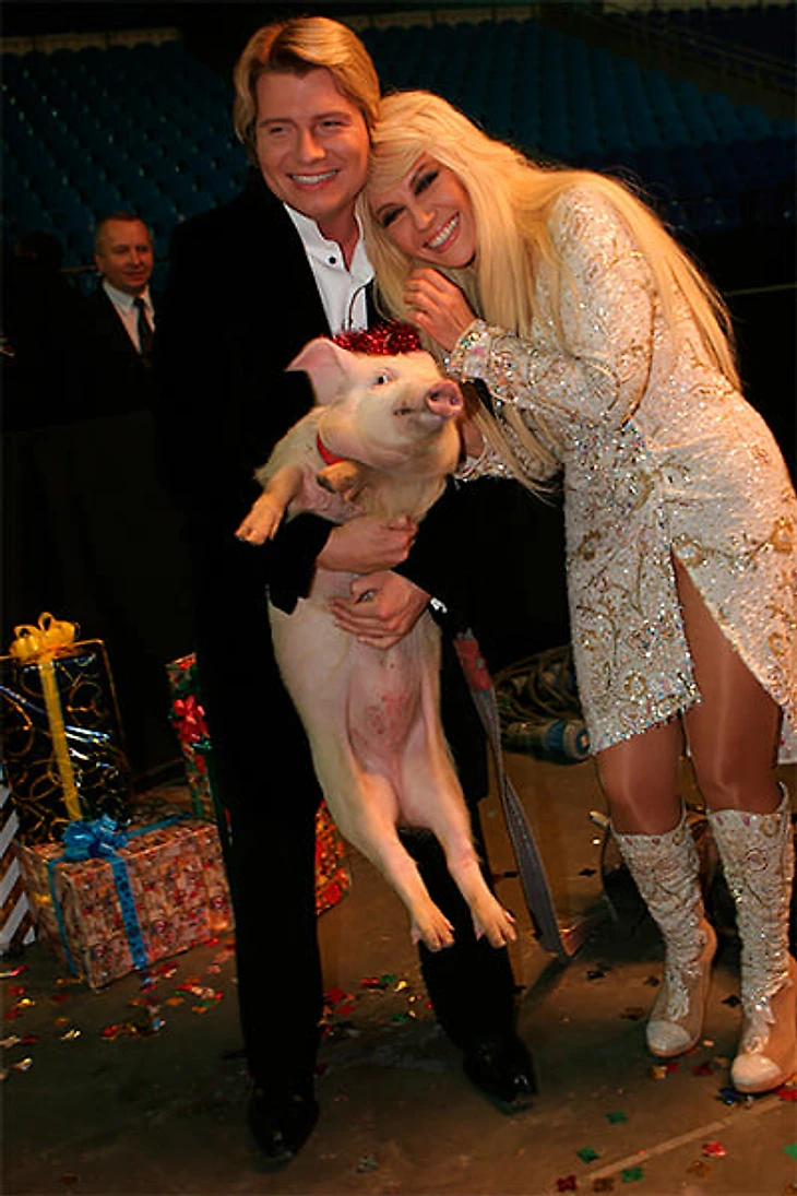 Николай Басков (слева) со свиньей (в центре) и Таисией Повалий.