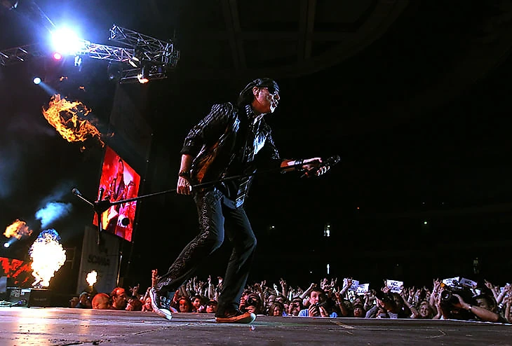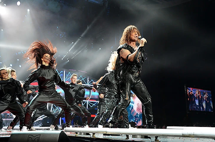 По сцене «Олимпийского» почти друг за другом рассекали Дима Билан с самой хитовой прической середины 2000-х и старики из Scorpions.