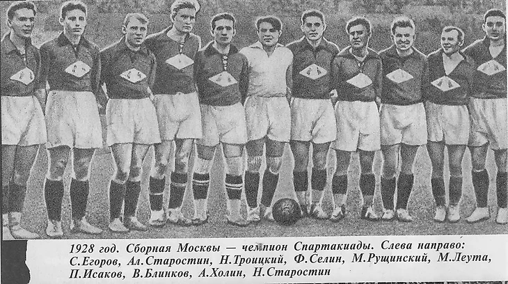 1924 год. Сборная СССР. Федор Селин второй слева в верхнем ряду