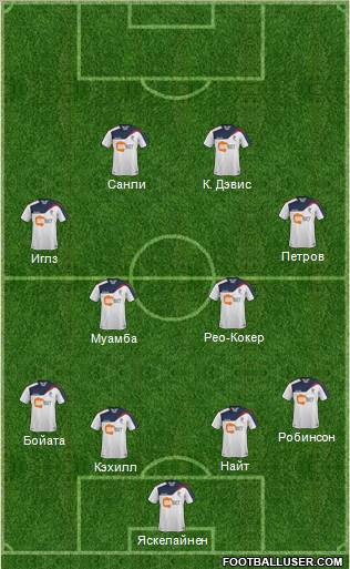 "Болтон" (4-2-2-2): Яскелайнен - Бойата, Кэхилл, Найт, Робинсон - Петров, Рео-Кокер, Муамба, Иглз - К. Дэвис, Санли.
