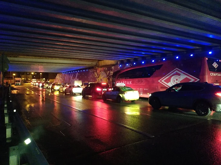 А когда народ все же выбрался со стадиона, то начал толкаться уже в другой пробке – автомобильной. Среди застрявшего потока машин уже в одиннадцатом часу вечера заметили и автобус "Спартака"…