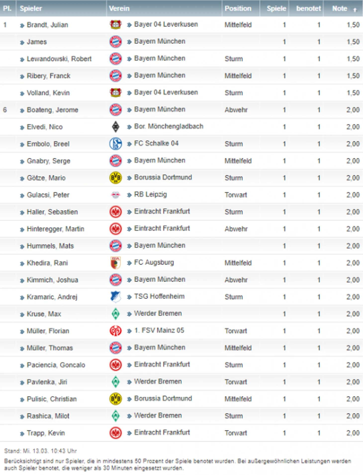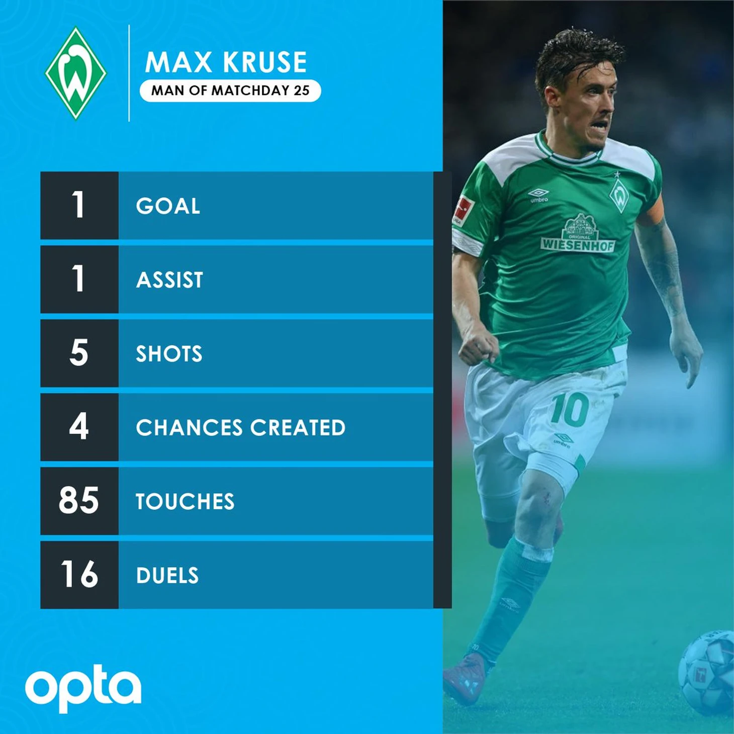 Целых 6 игроков «Вердера» выходили в стартовом составе в каждом матче этого сезона (Павленка, Селассие, Августинссон, Эггештейн, Клаасен и Крузе), в среднем по Лиге этот показатель равен 2 игрокам.