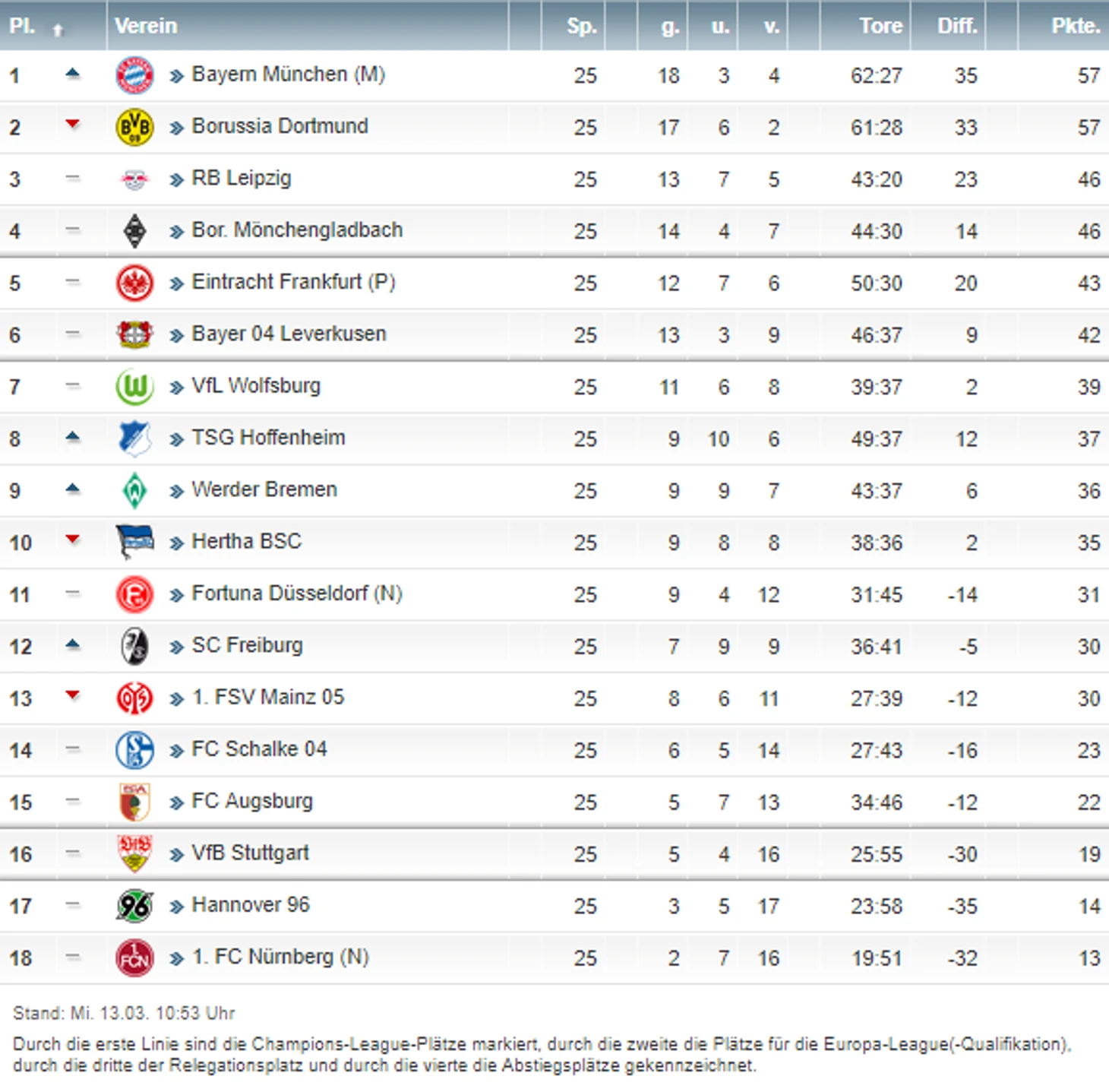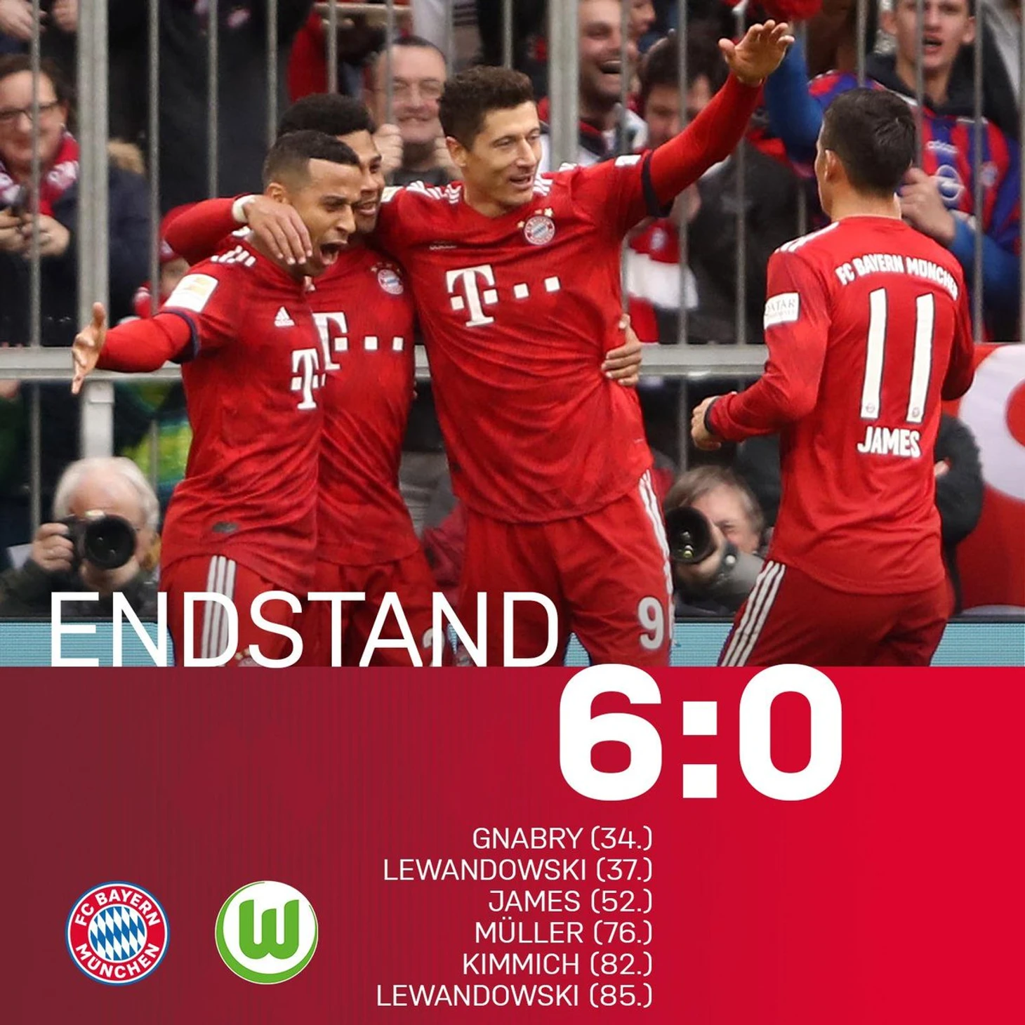 Баварцы возвращаются во главу стола. Лидирующее место в таблице снова принадлежит бессменным чемпионам последних лет – и на этот раз не только в сознании отрицающего существование такого параметра, как разница голов, Ули Хённеса, а полноправно. Подопечные Нико Ковача прошлись по «Вольсфбургу» и вырвались вперёд за счёт этого разгрома. По очкам с Дортмундом всё ещё ничья, но у баварцев теперь на два гола больше.