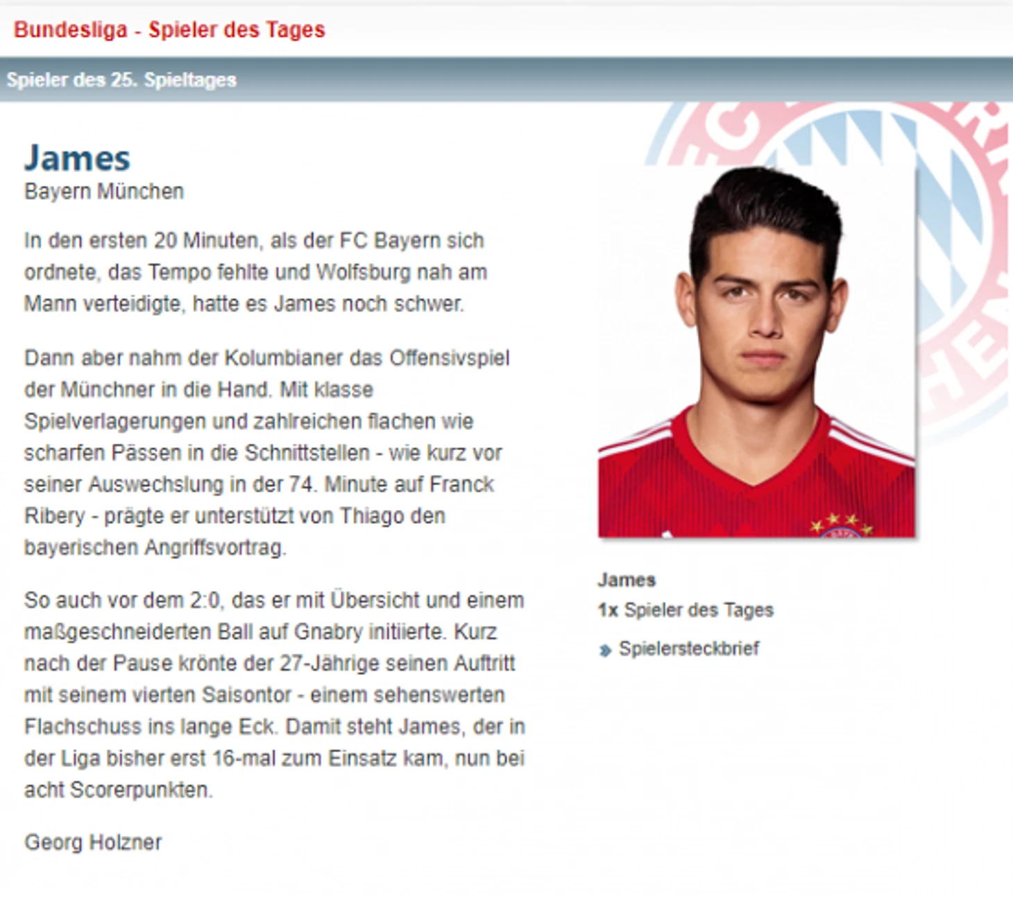 Хамес забил свой первый гол в Бундеслиге с октября, когда он забил… «Вольфсбургу».