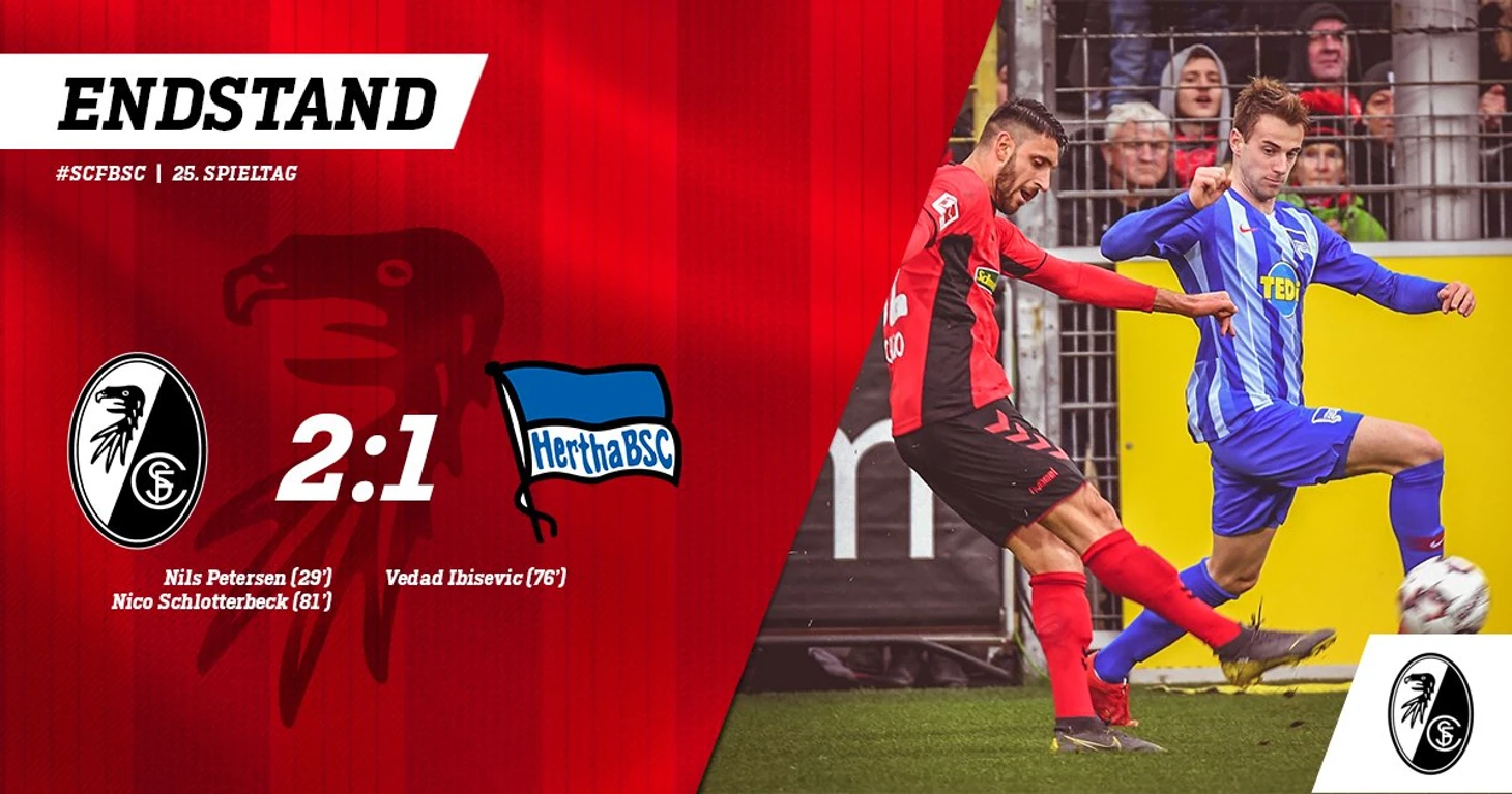 Такая перемена в защите не могла не отразиться на стабильности во втором тайме. На 76-й минуте Ибишевич перехитрил пытавшихся оставить его в офсайде защитников «Фрайбурга» и сравнял. Но спустя несколько минут маятник качнулся обратно, и берлинский капитан неаккуратно взмахнул головой во время розыгрыша углового. 2:1, «Фрайбург» снова вышел вперёд и дотерпел до конца матча.