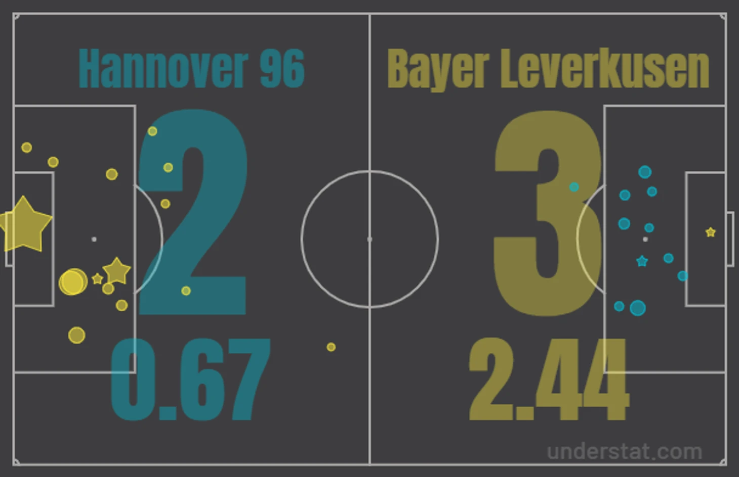 «Байеру» в этом сезоне уже не впервой играть в неприемлемых условиях: визит в Нюрнберг в первом круге превратился в водное поло из-за мощного ливня, и в тот раз с климатическими капризами команда не справилась, увезя лишь ничью. В этот же раз ребята, пребывающие со смены тренера в приподнятом настроении, лишь раззадорились и быстро сообразили, что если катать мяч бессмысленно, то надо вспоминать все приёмы из пляжного футбола. И это сработало: уже к 13-й минуте Кевин Фолланд, исполняющий обязанности капитана команды ввиду отсутствия Ларса Бендера, затолкал мяч в ворота почти что с метрового расстояния, а на 28-й он же перебросил ганноверского вратаря после удивительным образом точной для таких условий передачи Юлиана Брандта.