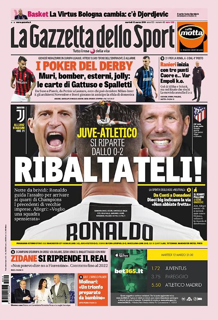 VAMOS! Заголовки Gazzetta, TuttoSport и Corriere за 12 марта