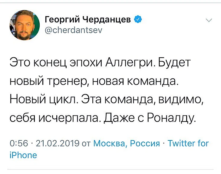 Твитт Георгия после поражения "Ювентуса" в Мадриде.