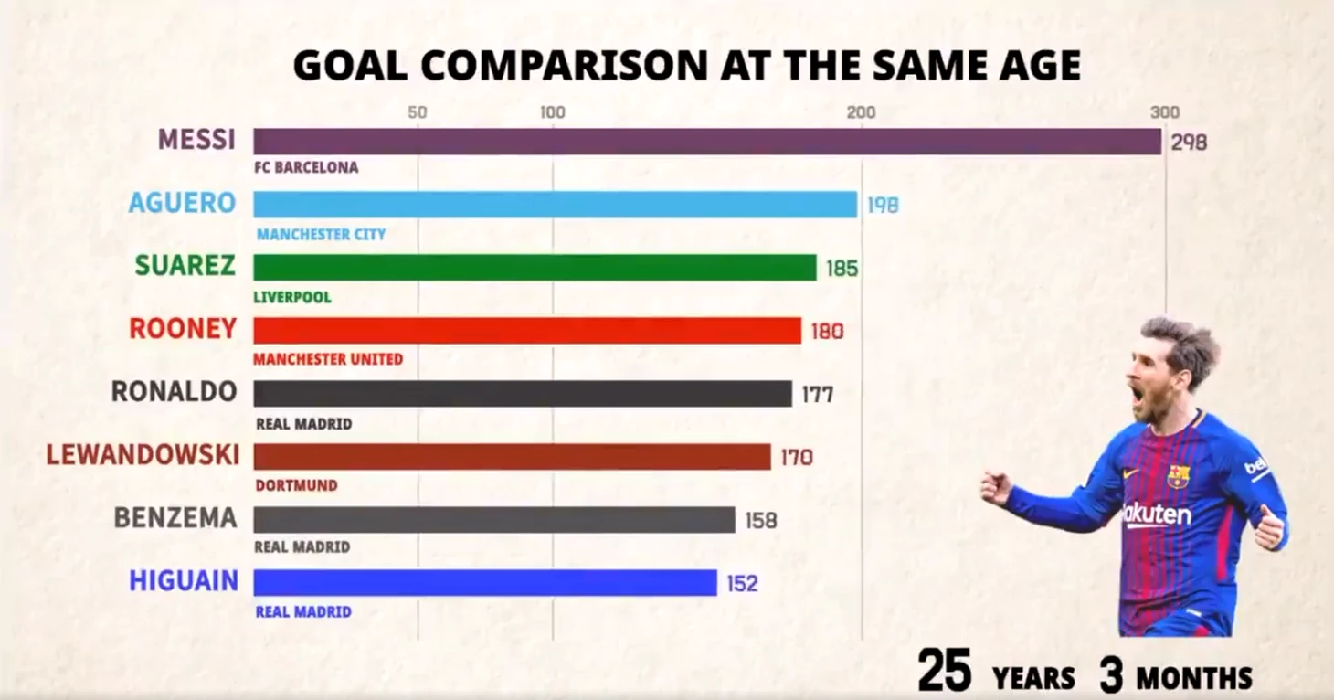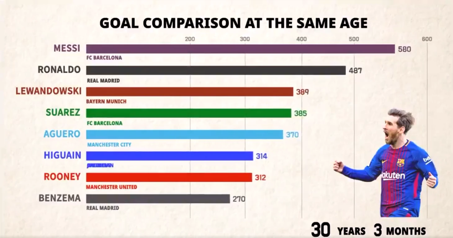 Твиттер коуча Дэвида Бэйрда подарил всем любителям футбола воистину залипательное видео. Две минуты нам показывают график забитых мячей всех звездных форвардов, начиная с 20 лет и до упора.