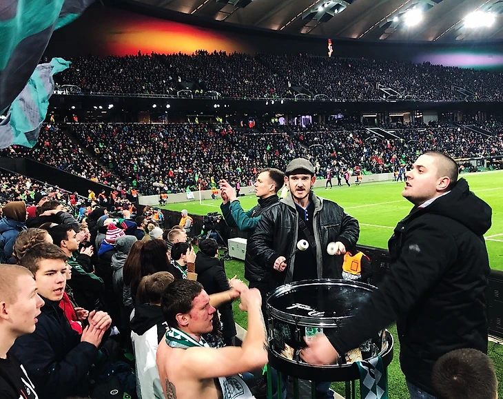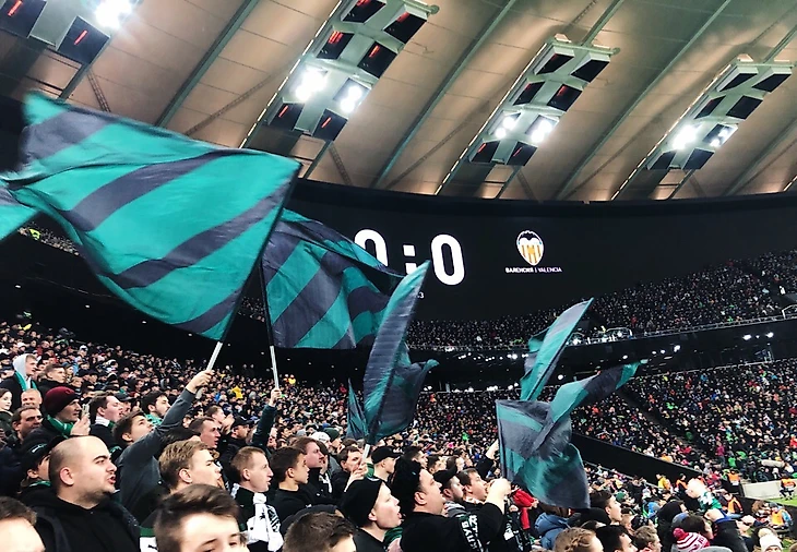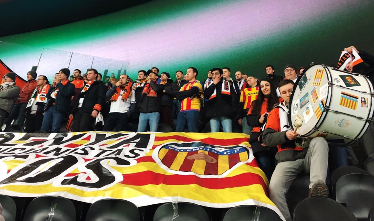 О солдауте на «Валенсию» стало известно еще 7 марта: 35 тысяч билетов разлетелись за несколько дней. Из фанов соперника почти никто не приехал, испанцев не больше двадцатки. Больше половины ребят на гостевом секторе – русские. Но баннер подготовили.