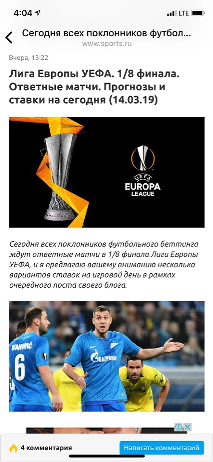 1 место: Прогнозы и ставки на ответные матчи Лиги Европы от "Мозаики ставок"