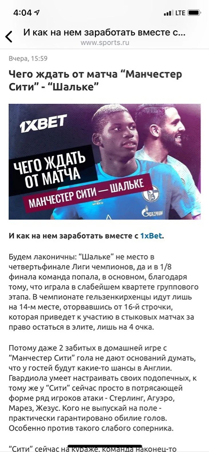2 место: Чего ждать от матча Манчестер Сити-Шальке от "Официального блога 1xbet"