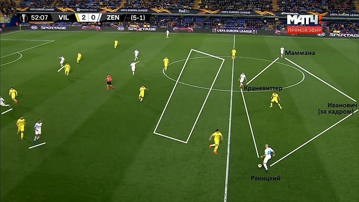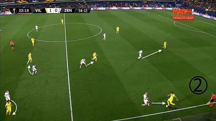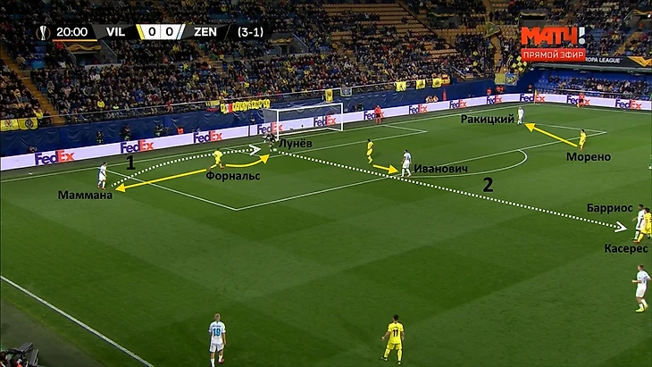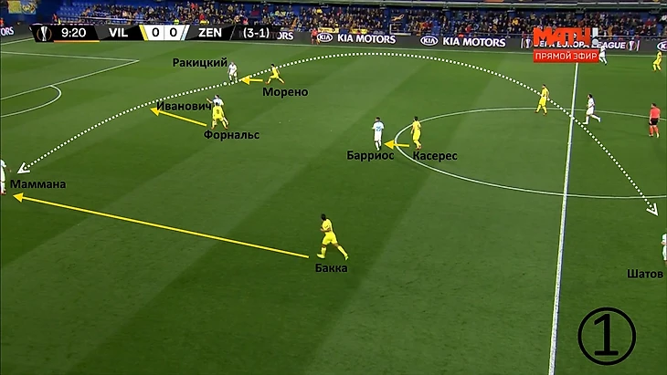 Даже первая голевая атака «Вильярреала» возникла из-за плохой структуры «Зенита» в позиционном нападении: