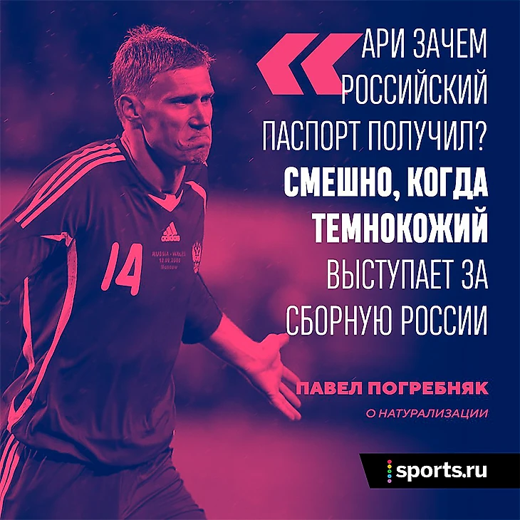 Теперь о Погребняке можно писать в новостях о борьба с расизмом. Он заявил, что «темнокожий Ари» в сборной России вызывает у него смех. Собственно, можно было бы забыть сразу о прочитанном еще лет пять назад, но не теперь. Помните, российское гражданство дали камерунскому игроку «Спартака» Жерри-Кристиану Тчуйсе, но за сборную России он не сыграл? Просто не планировал, смоталася в Камерун, а потом говорил, что играть он хотел, но ему помешали фанаты-расисты. Повторю, правда жизни такова, что ему просто нужен был наш паспорт. Чтобы его получить, он и рвался играть за сборную, а как получил, мотивация прошла.