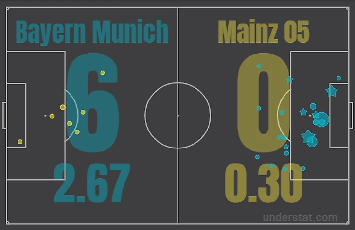 До матча на счету «Баварии» было 64 гола «Майнцу» — это больше, чем любому другому клубу Бундеслиги.