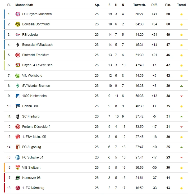 «Нюрнберг» проиграл 15 из 20 последних матчей в Бундеслиге, не выиграв из них ни одного. Это худший показатель в Бундеслиге с сезона 2011/12, когда «Кайзерслаутерн» не мог выиграть в 21 встречах.