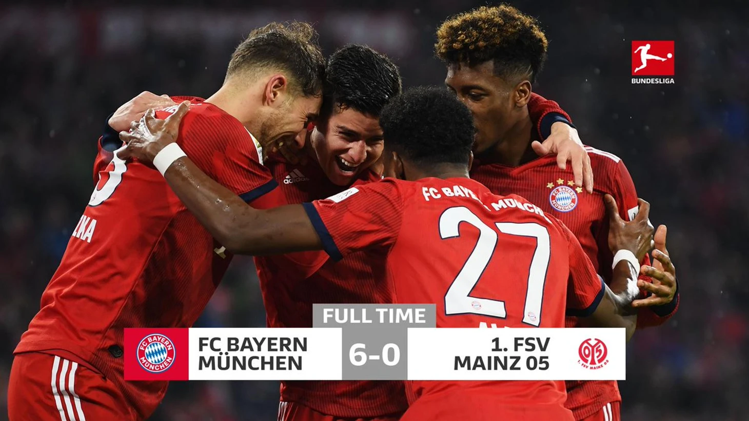 В составе мюнхенцев блистал Хамес. Колумбиец сделал хет-трик, первым голом за «Баварию» отметился молодой канадский талант Дейвис, очередной мяч забил Левандовски, укрепившись на первом месте в списке бомбардиров.
