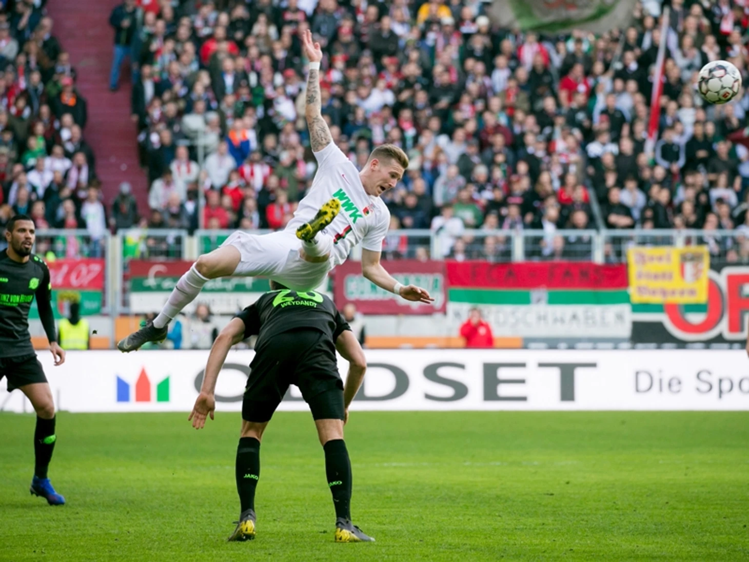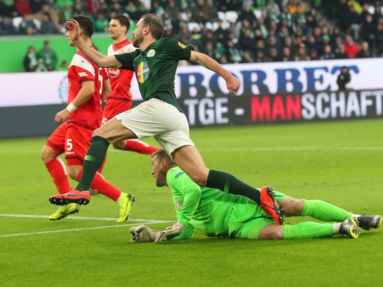 Несмотря на сопротивление гостей (именно «Фортуна» открыла счет в матче), куражная атака «волков» разорвала оборону «Аугсбурга». У стаи нашелся свой вожак, Ваут Вегхорст, организовавший все голы хозяев: три забил, два отдал. Даже VAR не смог остановить голландца, хотя при первом голе были подозрения на подыгрыш себе рукой.