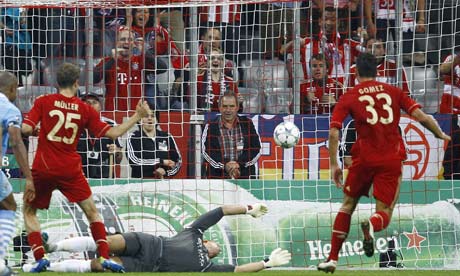 Ричард Уильямс с юмором подходит к описанию матча: «Закат солнца, толпы идущих на сверкающий стадион болельщиков, очереди из блестящих черных лимузинов, проделавших путь от пятизвездночного отеля к VIP-ложам « Альянц Арены», и оглушительные фанфары по поводу двух противоборствующих друг другу команд, в том числе и нескольких звезд европейского футбола: все это напоминало, как позднюю весну сменяет начало лета. Но, вечер «Манчестер Сити» ровным счетом не удался, кажется, что такую громкую пощечину он больше не получит в этом сезоне никогда. Сейчас, пожалуй, не найдется ни единого смельчака, готового поставить на их победу в главном клубном турнире Европы хоть что-то, не говоря уже о половине миллиардного состояния Шейха Мансура. Манчини не смог произвести впечатление на один из лучших клубов Старого Света, который сполна воспользовался возможностью для того, чтобы превратить домашнюю арену в место для празднования миниатюрного Октоберфеста».