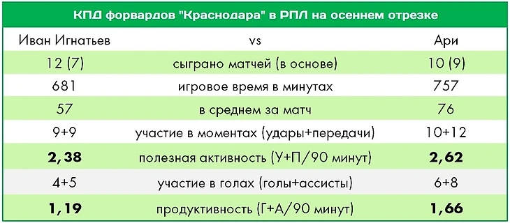 При этом в осенней части чемпионата, когда у Ари тоже были периоды простоя, Игнатьев заменял его почти без потери качества.