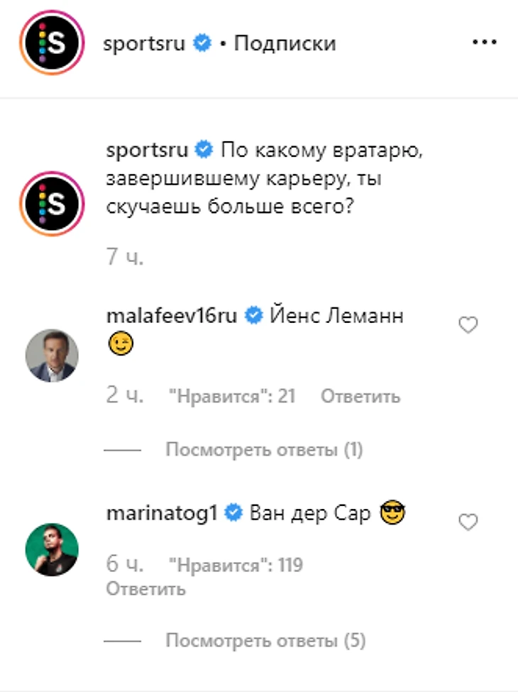В инстаграме Sports.ru мы задали вопрос: по какому вратарю, завершившему карьеру, ты скучаешь больше всего?