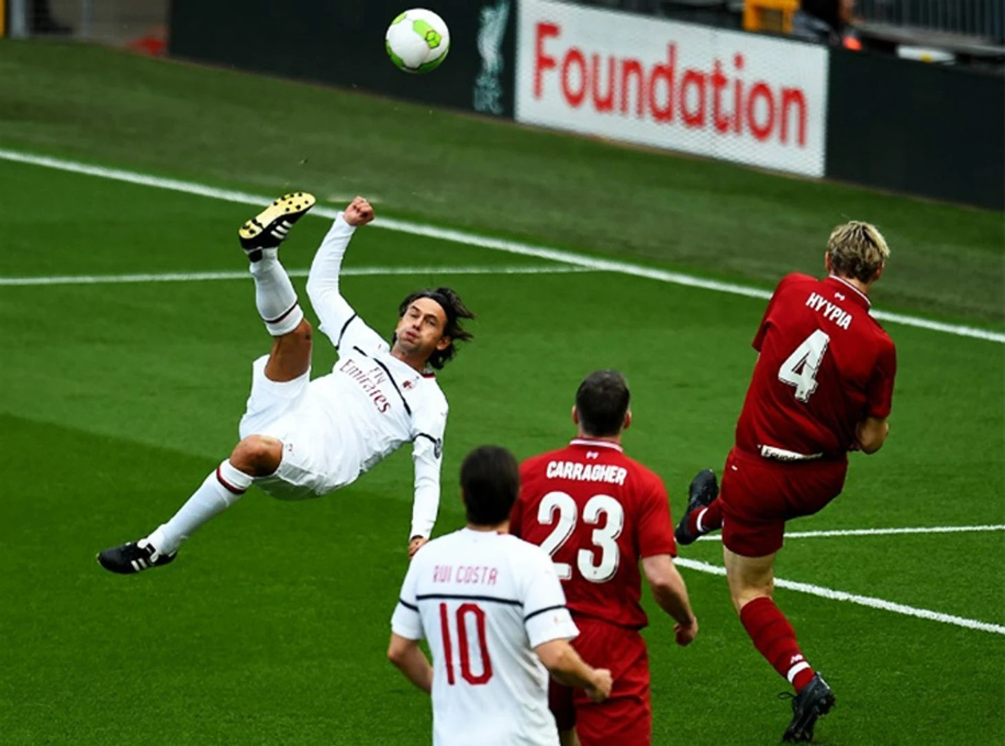 На фото: 22 марта 2019 года. «Энфилд Роуд». Даже в 45 лет Пиппо Индзаги пытается забить гол ударом в падении через себя.