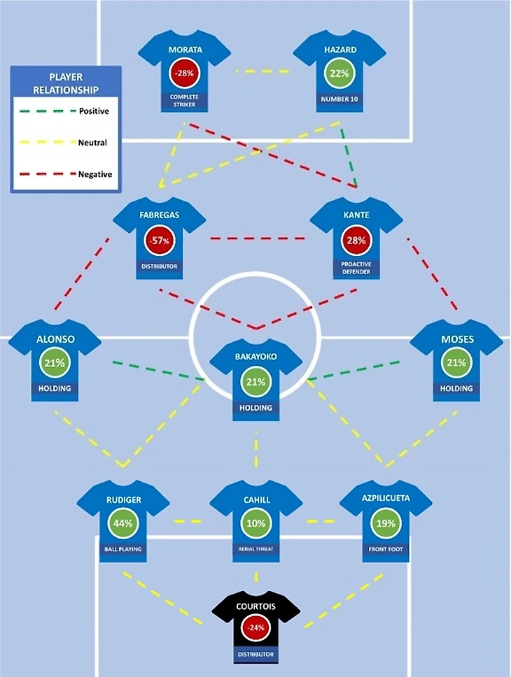 Это также может помочь приоритизировать трансферные цели, так как вы сможете понять смогут ли ваши приобретения принести новые выгодные командные связи или нарушат существующие. Тот же принцип может быть применен при принятии решения о продаже существующих игроков команды.