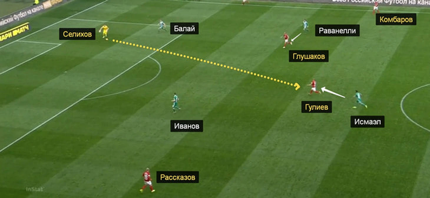 В матче с «Ахматом» визуально таких проблем не было, но качество передач Селихова все равно было низким. Три раза вратарь выбил мяч от ворот к центральному кругу в зону, где не было ни одного игрока гостей. На 9-й минуте передача Селихова на Гулиева и вовсе привела к перехвату «Ахмата» и контратаке, завершившейся голом Балая. Конечно, основная вина в голе – на Глушакове и Гулиеве, не разобравшихся в простом моменте (скорее всего, в большей степени – на Глушакове), но пас вратаря на полузащитника под прессингом тоже казался не очень уместным.