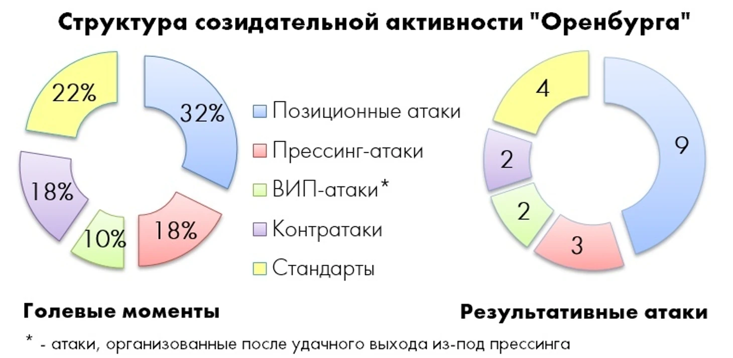 Высокий прессинг команда Федотова тоже использует, но очень дозированно. При этом в выездных матчах с «Ростовом» и «Локомотивом» оренбуржцы дважды забивали на дебютных отрезках именно в прессинг-атаках, провоцируя соперника на ошибки при выходе со своей половины поля.