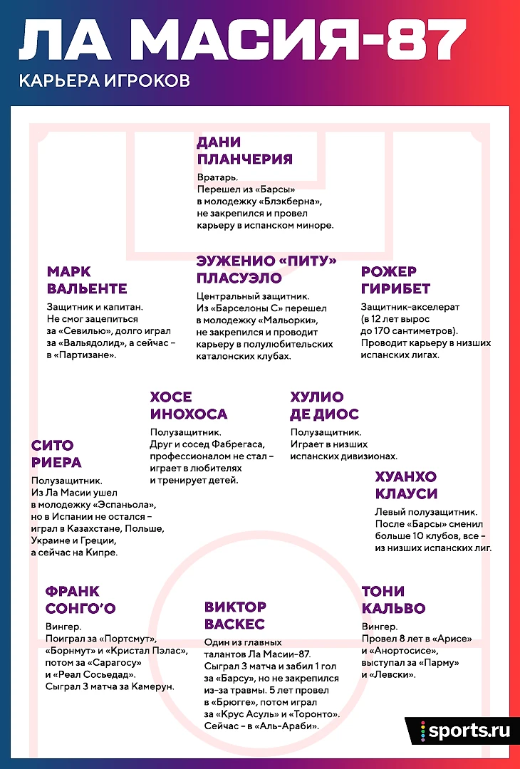 Поколение Ла Масии 1987 года было, возможно, самым доминирующим в истории футбольных академий. Редко случается, чтобы за детскую команду выступали хотя бы две будущие звезды (игроки топ-уровня даже в каталонской школе появляются не каждый год). В «Барсе»-87 таких было трое – Месси, Пике и Фабрегас.