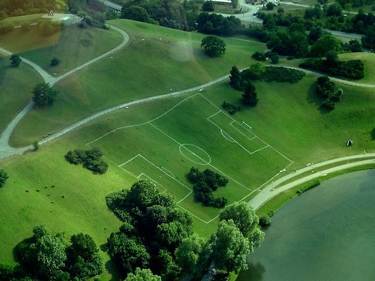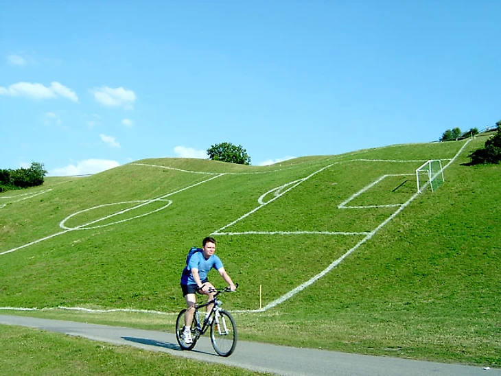 В 2003-м художница нанесла разметку поля на склон в парке Мюнхена. Посетители назвали это «новой Пизанской башней»