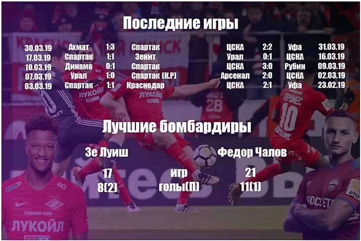 Команды зеркально поменялись местами, по сравнению с осенней частью. В первом круге чемпионата противостояние завершилось ничьей на «ВЭБ Арене». Тогда ЦСКА и Спартак подходили к дерби после сложных матчей в Лиги Чемпионов. Армейцы в Чехии урвали ничью с «Викторией»(2-2), а красно-белые уступили на выезде «Рапиду»(2-0).