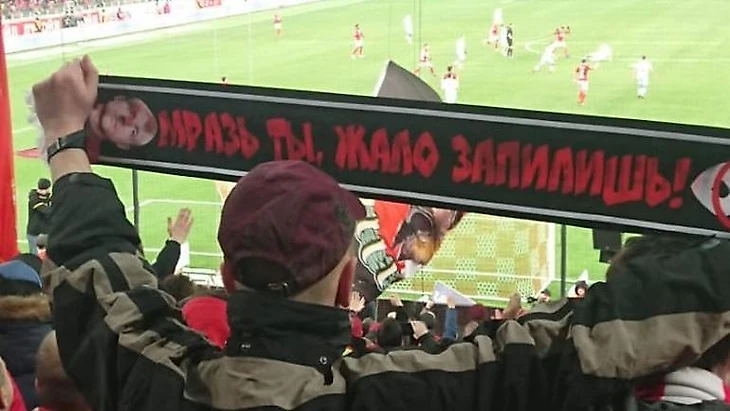 В самом начале матча между «Спартаком» и ЦСКА один из фанатов достал шарф, на котором были написаны оскорбления в адрес капитана «Спартака» Дениса Глушакова.
