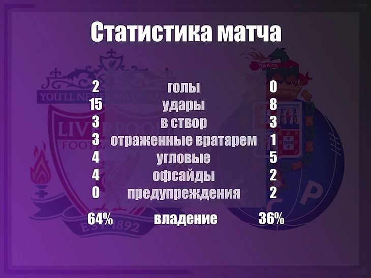 Это хороший задел для «Ливерпуля» на ответный матч. Учитывая игру «Порту», сложно будет что-то придумать против столь уверенных англичан.