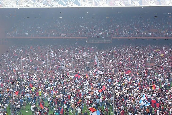 Ну и началось! Игроки праздновали так, что обвалили подвесной потолок на «Луиджи Феррарис»! Поле же в это время было заполнено болельщиками из Неаполя в розах «Дженоа», а сами генуэзцы бегали с шарфами, на которых красовалось: «Наполи и Дженоа: в серию А только вместе» ✊️