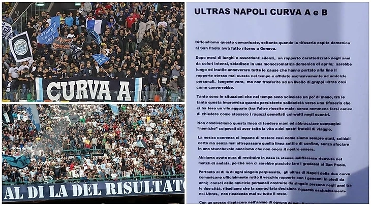 Причина разрыва: генуэзцы выразили соболезнования (а затем и баннер вывесили) погибшему фанату «Варезе» Даниэле Белардинелли, который скончался после декабрьского столкновения с ультрас «Наполи» перед встречей с «Интером».