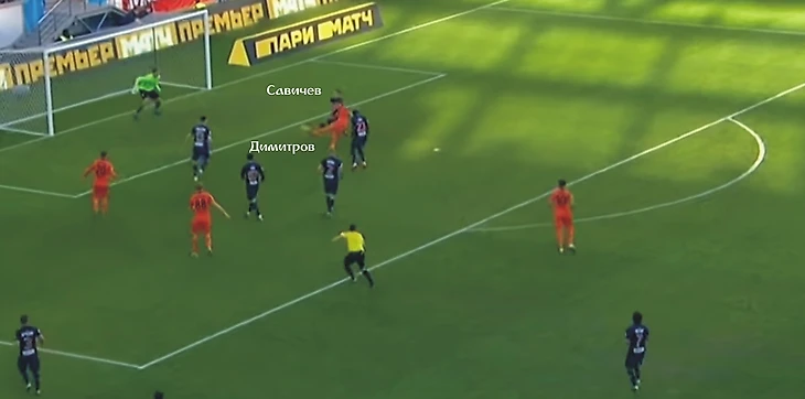 "Урал" отыграл первый мяч во второй тайме. Савичев еле шевелил ногами вслед за Димитровым, но так и не решился против него обороняться.