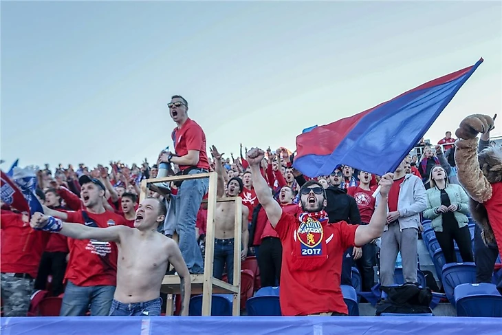 На 32-ой минуте фанаты команды хозяев,желая придать новый импульс своим любимцам затянули :"Хей-хей, красно-синий -самый сильный!", словно напоминая как о клубных цветах,так и о том кто сегодня должен непременно победить.