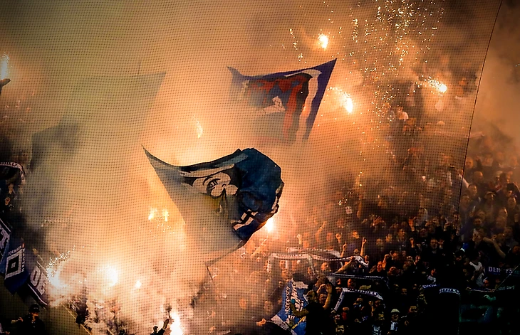 Но главный перфоманс устроили не хозяева, а сектор болельщиков «Гамбурга»: файеры, песни, пестрые цвета – все как мы любим.