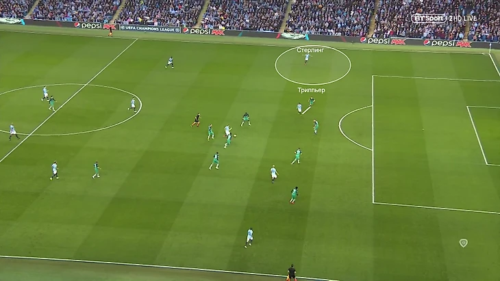В плане построения атаки «Сити» забил два гола-близнеца. Именно описанный быстрый перевод мяча через опорную с одного фланга на другой оставлял вингера (сначала Стерлинга, потом Бернарду) в выгодной позиции. Разница была лишь в том, что в первом мяче пространство на фланге нашел Де Брюйне (его типичное смещение), а во втором все началось с Менди.