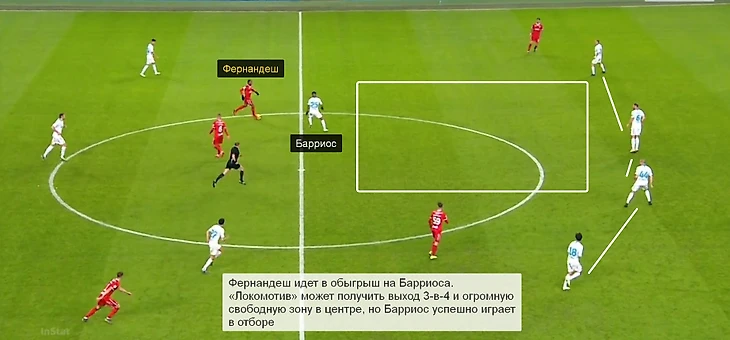 Даже с такими цифрами Барриос был ярок на чужой половине в гостевых матчах со «Спартаком» и «Локомотивом». Против «Спартака» Вильмар забил первый гол за «Зенит» и нанес еще один удар (неточный) после выигранного подбора. Против «Локо» колумбиец четыре раза продвигался с мячом на чужую половину, причем дважды – вообще от своей штрафной после выигранного подбора. Только один прорыв завершился точной передачей, поэтому можно говорить именно о яркости Барриоса (на фоне обычных выступлений и ожиданий от опорника), а не о его качественных действиях в атаке. Для Семака Барриос гораздо важнее в первой фазе позиционных атак.