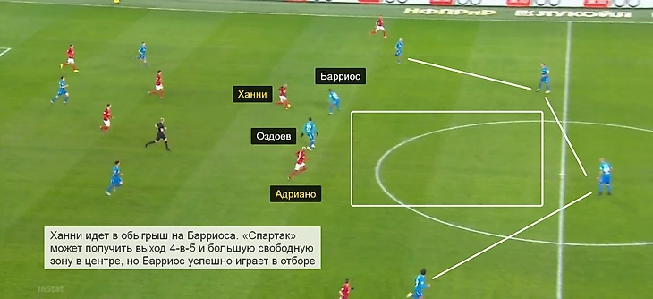 В мартовских матчах с «Уралом» и «Уфой» Барриос уступал по Packing (количеству игроков соперника, отрезанных передачей) Ракицкому, Ивановичу и второму центральному полузащитнику (Оздоеву или Нобоа), в игре со «Спартаком» – Ракицкому, Нобоа, немного опередив лишь Ивановича (28 отрезанных соперников против 22). За первый пас в «Зените» отвечают другие, Барриосу нужно освободить их из-под давления.