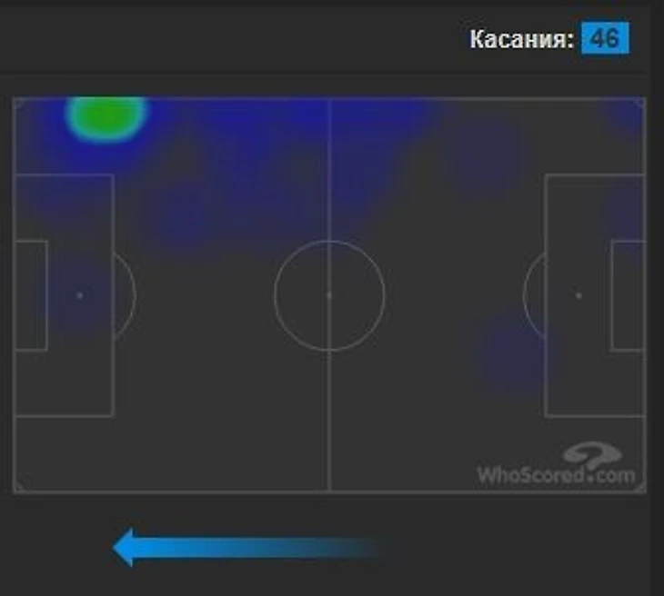Фланговые защитники «Зенита» вызывают боль в пятой точке у болельщиков клуба уже не первый год, однако сегодня Смольников показал себя весьма неплохо. В атаке «Зенит» использовал правый фланг активнее, чем левый, да и в целом моменты у ворот Сафонова именно с этого фланга приходили чаще. А вот в обороне Игорь провалился - лишь один отбор за весь матч и ни одного перехвата, да и первый пропущенный «Зенитом» мяч случился именно после того, как Рамирес легко ушел от 30-летнего защитника. Тепловая карта у 19-го номера «Зенита» очень хорошо показывает, где именно преуспел в сегодняшнем матче игрок сине-бело-голубых: