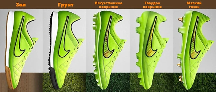 В любительских лигах России, а также иногда в ПФЛ играют на искусственном газоне. Многие совершают ошибку, покупая под искусственную траву бутсы с железными шипами или сороконожки. У каждой футбольной обуви есть разный тип подошвы. Для вышеупомянутых полей лучше всего подходят бутсы с подошвой FG. Она представляет собой 12-13 пластмассовых шипов. Кстати, бутсы FG подходят и для полей с натуральным газоном. Самые популярные бутсы у профессионалов — бутсы с подошвой AG. Она представляет из себя комбинирование пластмассовых и железных шипов для улучшенного сцепления. Не рекомендую играть в них на искусственных полях, так как все мои знакомые, совершившие такой футбольный грех, жалуются на давление и боль в коленях. Также существует подошва IC, сделанная только для игры в зале на паркете. Даже на искусственном поле в бутсах с такой подошвой будет очень скользко. Пожалуй, самая популярная подошва для игры на резиновом покрытии, асфальте или искусственном газоне с низкой травой — TF. В народе такие бутсы называют сороконожками. Их рекомендуется покупать тем, кто не занимается футболом и не играет в любительских командах.