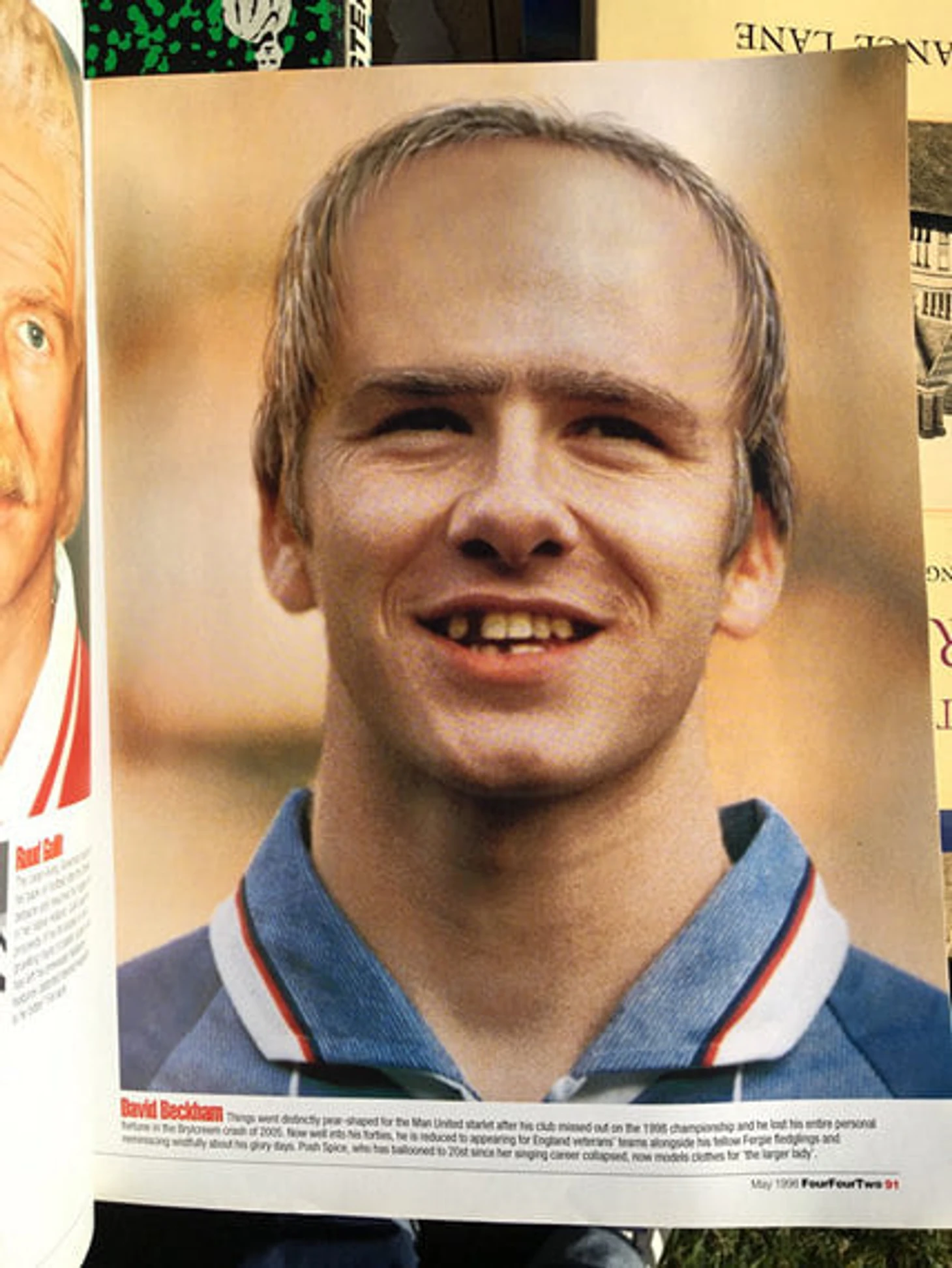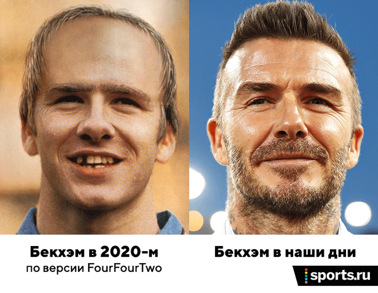 20 лет назад FourFourTwo представлял жизнь Бекхэма в 2020-м: лысый, без зуба, с толстой женой